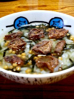 よっちゃん梅茶漬けのできあがり~(ノ-=-)八(-=-*)ノウヒョー。